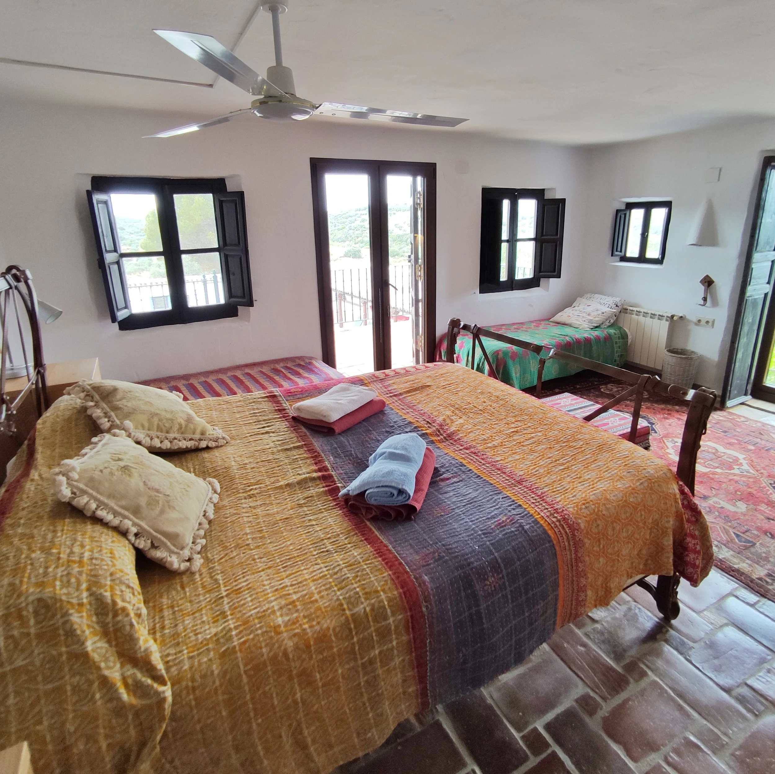 Nestled amongst nature with beauty in every direction, El Cachete is a beautiful 150 year old renovated farmhouse, located in the heart of the Andalusian countryside. The Cortijo is situated in 80 acres of land planted with olive groves and Spanish oak.